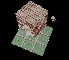 In the southeast is a structure that looks like the Madcity "garage", but it isn't - it evolved from a quite different direction, and has no internal structure on its second level; and it is much smaller. One part of the elevated roadway was inspired by something similar in the Bessler's World map; other than that, everything is entirely original (and even the derivative elements are used in new ways).