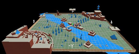 This was my first map using the new features available in version 2. It has several novel features: Gaussian hills, Highways, and a Greek temple. I named it Ionian Pathways because I really focused on various routes through the map, rather than on creating particular neighborhoods (though those are certainly there). It is quite open, which would be great for Laser.