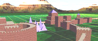 One fortress has crenellated towers, and looks vaguely like Windsor Castle, with a large round tower. In the very corner of the map is a building with a teleporter, which will take you to a floating platform above one flank of the fortress.To enter this fortress, you must either leap the walls between crenels, or drive through a large arched entrance (or leap from a siege tower positioned outside the walls).