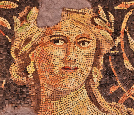I have an interest in creating stone mosaics. I thought of writing software to help (of course), but it's not as simple as one might think. Look at the face mosaic below, and notice how the stone sequences 'flow' to give shape to the face: