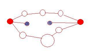 Although I don't play much Capture the Flag, I've thought of an idea I'd like to try for a map. The map would have different isolated playing areas (either on the surface, or on platforms up in the air). These areas (probably 10 to 15 or so) would be connected in a simple topology: a team base at either end of this web of areas, the web providing pathways for reaching the opposite team's flag (two pathways are shown in the diagram )Note that this is a logical layout, not a physical one. The physical implementation might look very much like an ordinary map, but certain areas would be reachable only via particular pathways. The number of pathways probably has to depend on the number of players; but three would allow some strategic thinking (e.g. "Let's fake a strong assault up the left side, and when the other team commits forces, we'll strike on the right".) More intricate topologies would be possible to allow supporting tanks to move in, but this would require larger teams.
