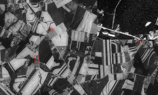 The red squares on the left are where Barren's Church and George Bentz's house are. The one on the right is where I think Jacob Bentz's house is; I can't quite tell from the image, and equating it to the map is somewhat problematic.