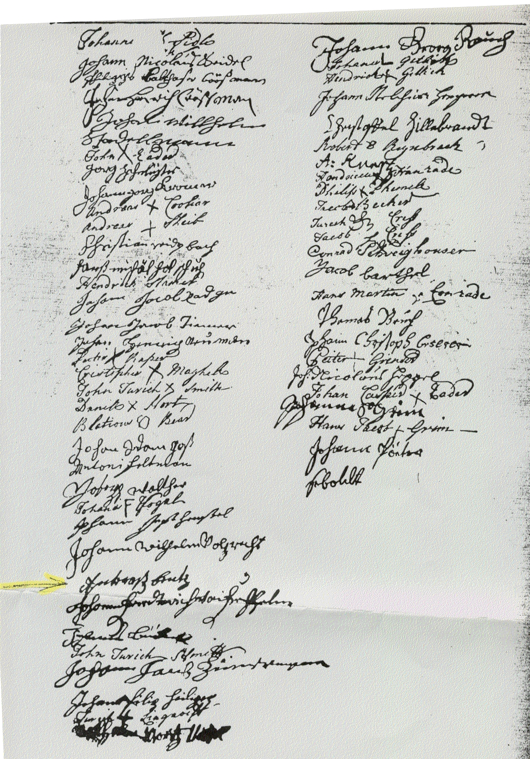 The signature on the main page, and above, was taken from "Pennsylvania German Pioneers" by Ralph B. Strassburger and William J. Hinke, published in 1934 by the Pennsylvania German Society, Norristown, PA.