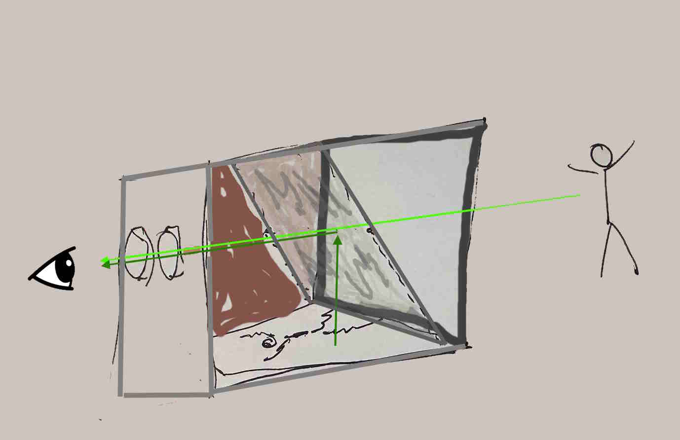 Here's a very crude sketch - it's awful, but the kind of thing I'd toss into a notebook - the person would look in at the left side, and could either see the current stick figure, of, if the image on the bottom were strongly illuminated, the person would see the historical image on the bottom of the box. Which took precedence would be controlled by an illumination knob, so the user could see what's currently present only, historical image only, or anything in between. This whole box would be on a post, likely with some descriptive text attached:
